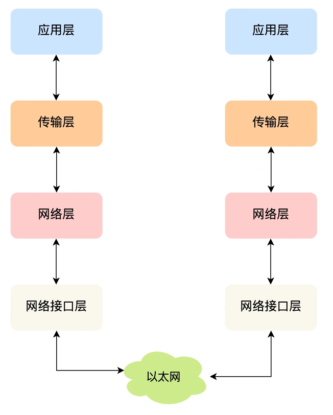 综上所述,TCP/IP 网络通常是由上到下分成 4 层,分别是应用层,传输层,网络层和网络接口层。