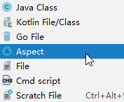 DoJoinPoint时,看到一个 Aspect 的选项,以为这个就是创建切面的快捷操作,如图; - 创建完成以后发现有点不对,不是 class 类型的,是个 aspect,于是他手动把 aspect 改成了 class,如图;