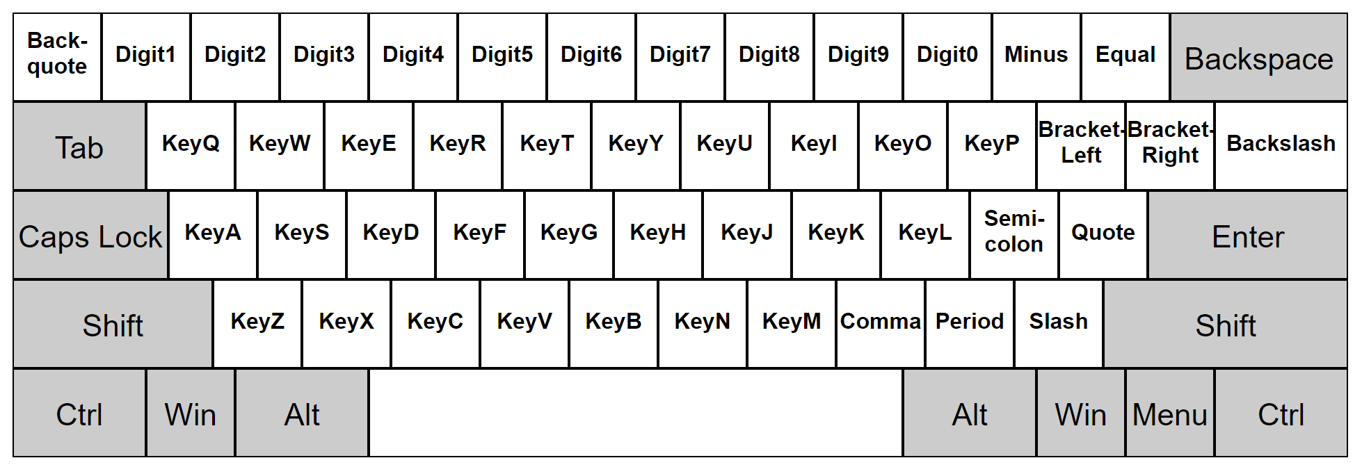 | Kb Layout | Scan Code | Virtual Key | Produced Character |