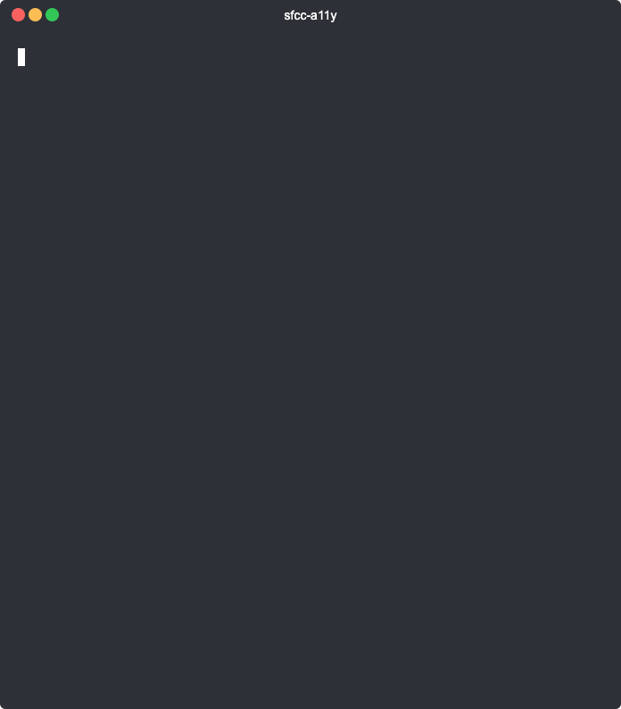 ↤ Developer Overview sfcc-a11y help Get Help when you need it You can get help at any time by running: sfcc-a11y help You can get help on a specific command by just adding help to the end of the command: sfcc-a11y auth help